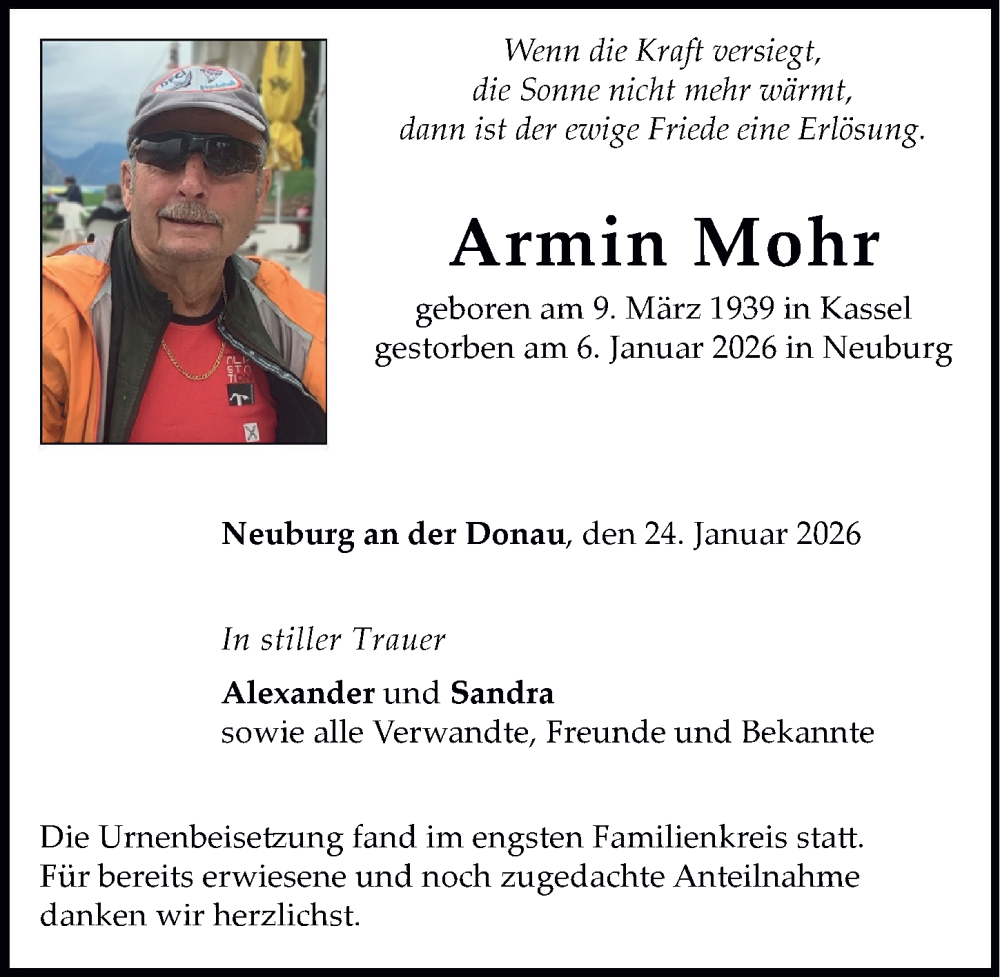 Hier finden Sie alle Traueranzeigen aus der Zeitung, die bisher für Armin Mohr erschienen sind. Weitere Traueranzeigen, die in der Zeitung erscheinen, werden hier ebenfalls aufgelistet