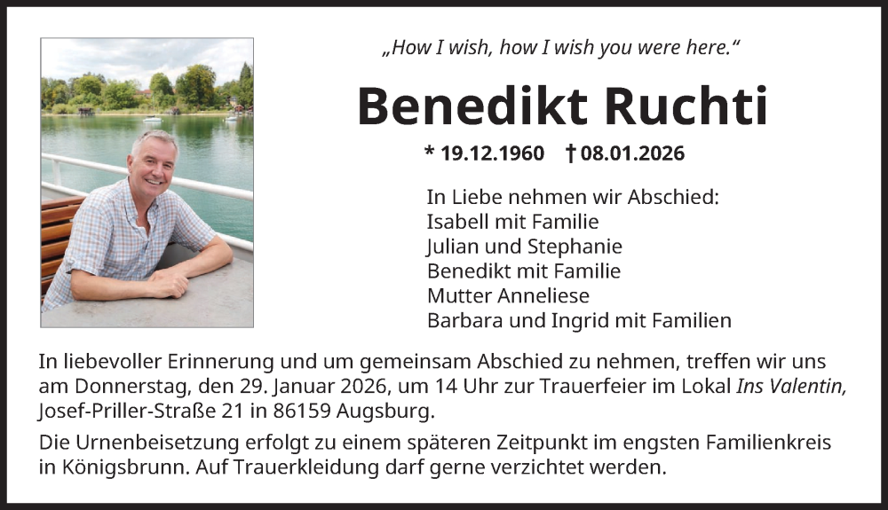 Hier finden Sie alle Traueranzeigen aus der Zeitung, die bisher für Benedikt Ruchti erschienen sind. Weitere Traueranzeigen, die in der Zeitung erscheinen, werden hier ebenfalls aufgelistet