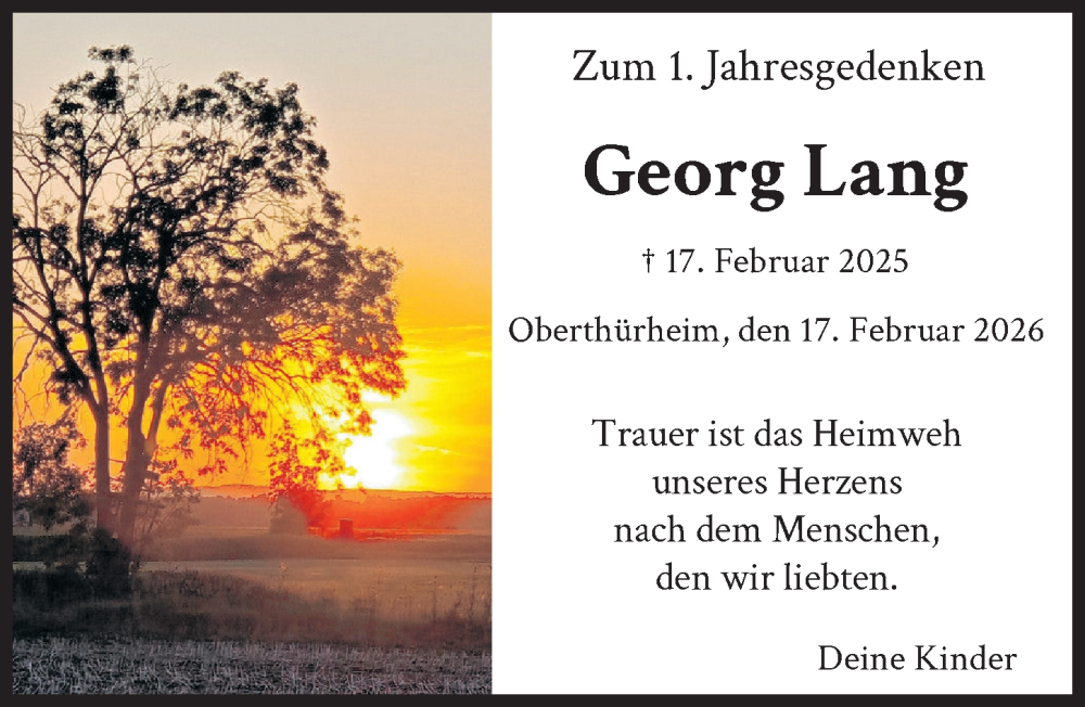 Hier finden Sie alle Traueranzeigen aus der Zeitung, die bisher für Georg Lang erschienen sind. Weitere Traueranzeigen, die in der Zeitung erscheinen, werden hier ebenfalls aufgelistet