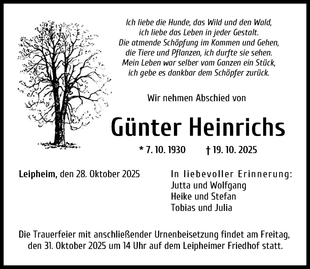 Hier finden Sie alle Traueranzeigen aus der Zeitung, die bisher für Günter Heinrichs erschienen sind. Weitere Traueranzeigen, die in der Zeitung erscheinen, werden hier ebenfalls aufgelistet
