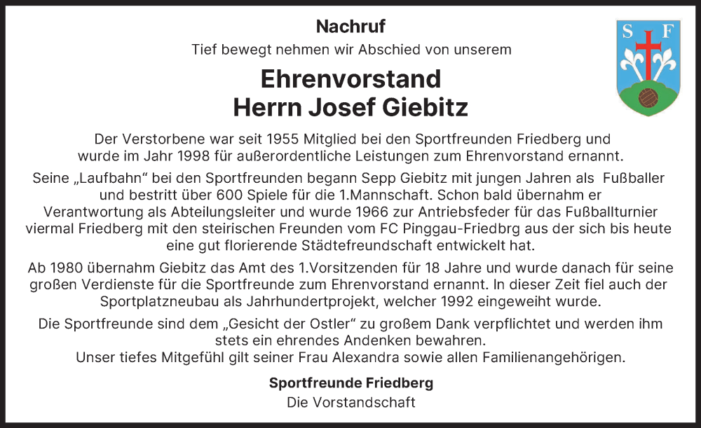 Hier finden Sie alle Traueranzeigen aus der Zeitung, die bisher für Josef Giebitz erschienen sind. Weitere Traueranzeigen, die in der Zeitung erscheinen, werden hier ebenfalls aufgelistet