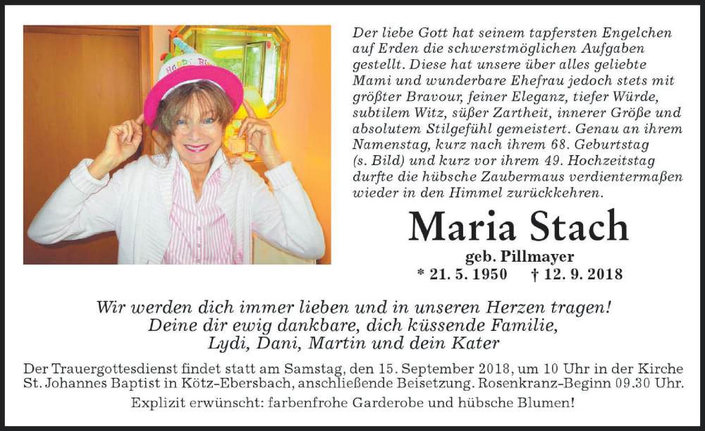 Hier finden Sie alle Traueranzeigen aus der Zeitung, die bisher für Maria Stach erschienen sind. Weitere Traueranzeigen, die in der Zeitung erscheinen, werden hier ebenfalls aufgelistet