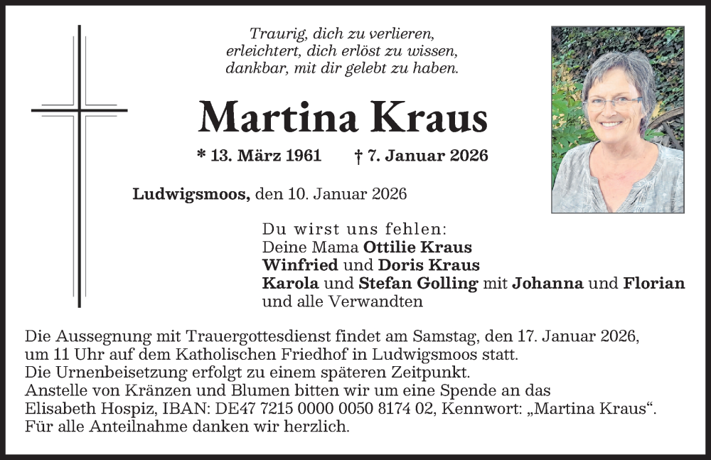 Hier finden Sie alle Traueranzeigen aus der Zeitung, die bisher für Martina Kraus erschienen sind. Weitere Traueranzeigen, die in der Zeitung erscheinen, werden hier ebenfalls aufgelistet