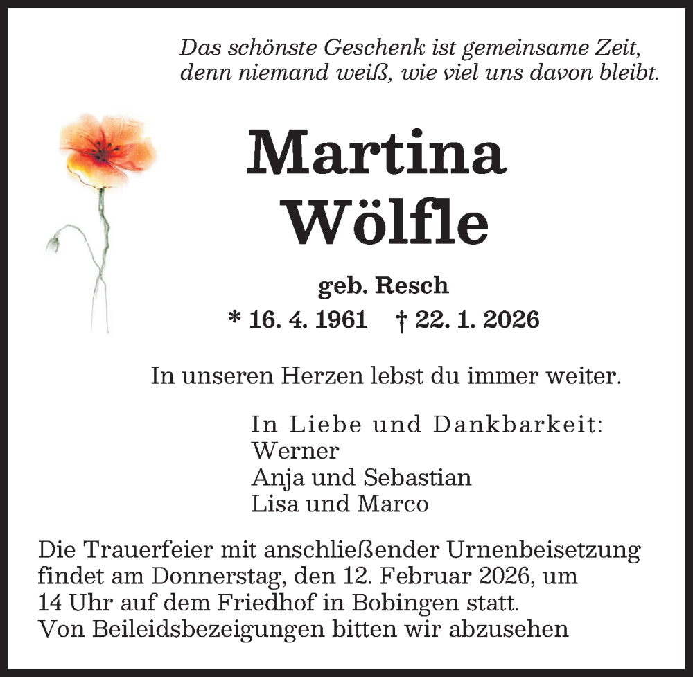 Hier finden Sie alle Traueranzeigen aus der Zeitung, die bisher für Martina Wölfle erschienen sind. Weitere Traueranzeigen, die in der Zeitung erscheinen, werden hier ebenfalls aufgelistet