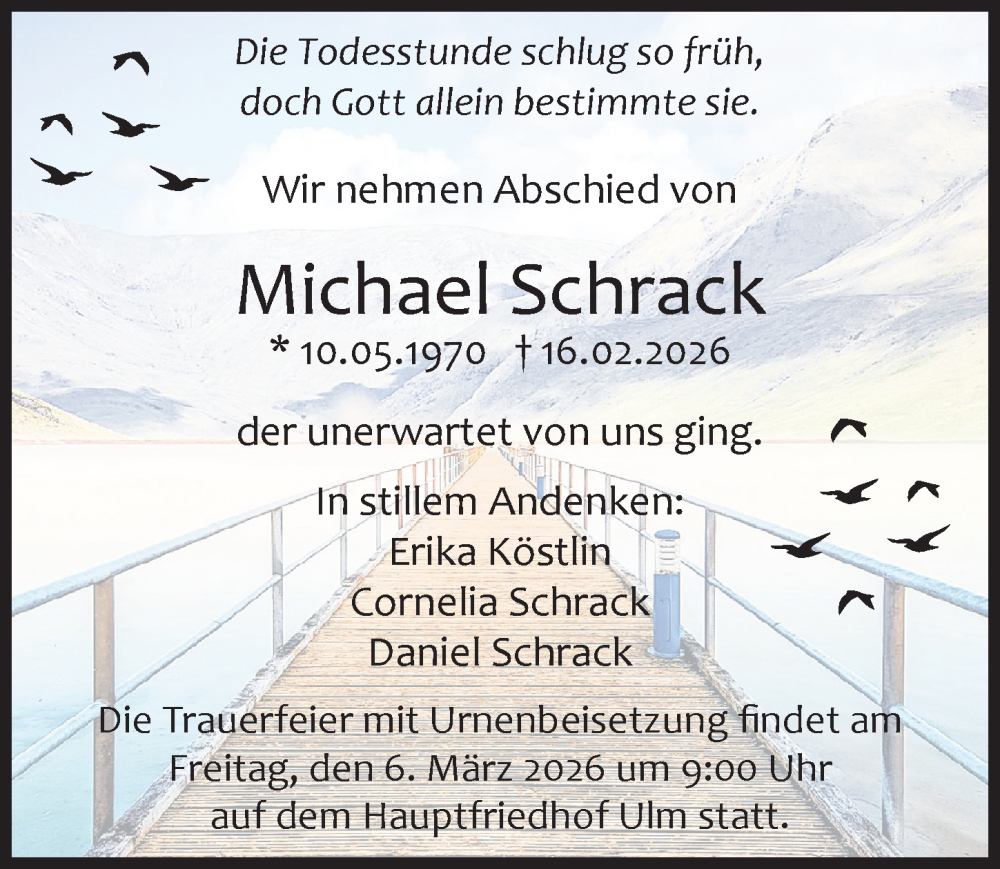 Hier finden Sie alle Traueranzeigen aus der Zeitung, die bisher für Michael Schrack erschienen sind. Weitere Traueranzeigen, die in der Zeitung erscheinen, werden hier ebenfalls aufgelistet