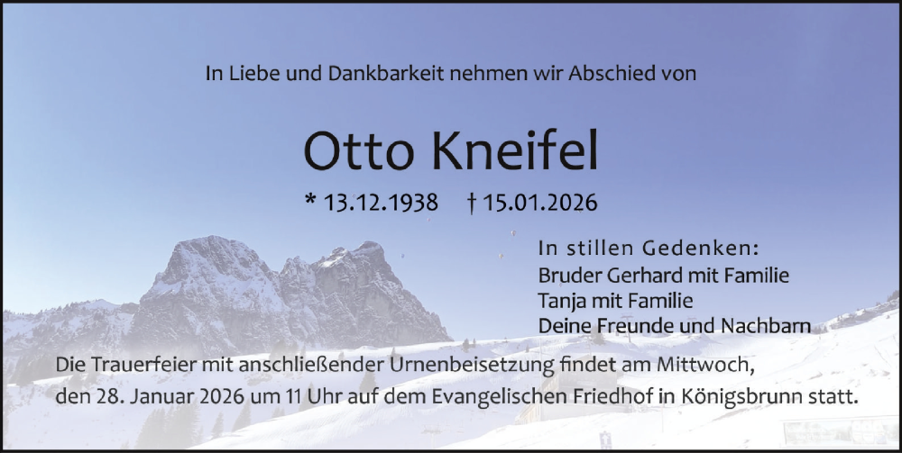 Hier finden Sie alle Traueranzeigen aus der Zeitung, die bisher für Otto Kneifel erschienen sind. Weitere Traueranzeigen, die in der Zeitung erscheinen, werden hier ebenfalls aufgelistet