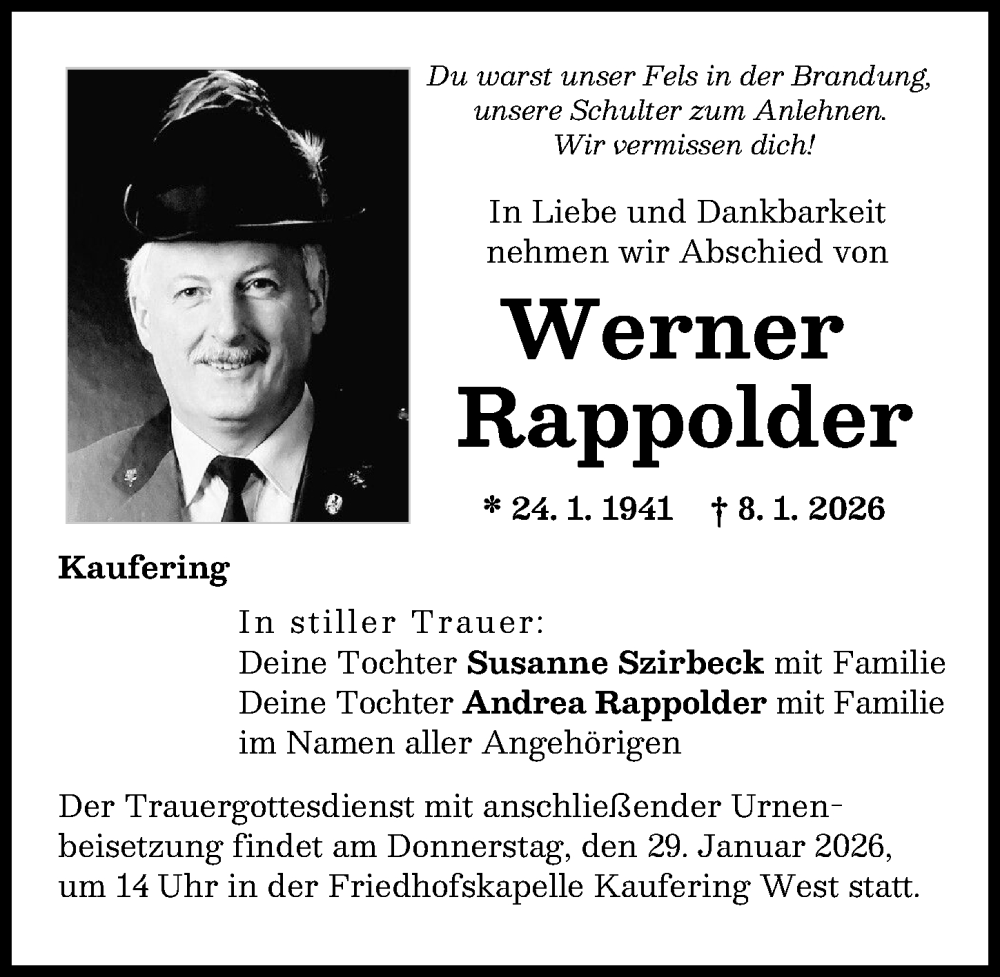 Hier finden Sie alle Traueranzeigen aus der Zeitung, die bisher für Werner Rappolder erschienen sind. Weitere Traueranzeigen, die in der Zeitung erscheinen, werden hier ebenfalls aufgelistet